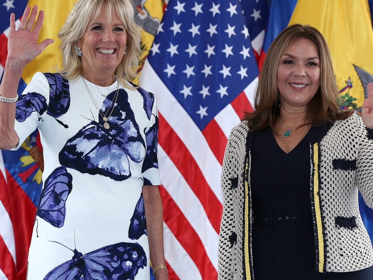 La conversación entre ambas damas se alargó más de lo esperado ya que también hablaron sobre la familia y lo que significa tener nietos, y al final de ella se unió María Mercedes Lasso, la hija del presidente de Ecuador, Guillermo Lasso, y de Alcívar, para saludar a Jill Biden.
