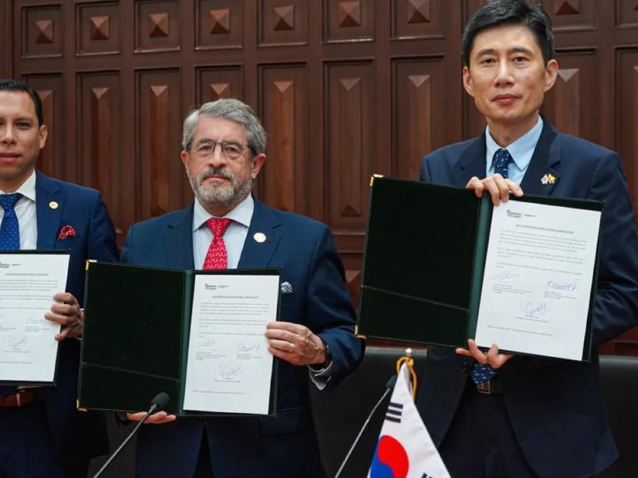 Ayer, 15 de noviembre, el ministro de Salud Pública, José Rúales, y Ilwoong Yoon, cónsul y encargado de Asuntos Económicos de la embajada de la República de Corea en Ecuador, firmaron el acta de entrega-recepción de 290 mil dosis de vacuna contra la fiebre amarilla y 240 mil unidades de jeringuillas.