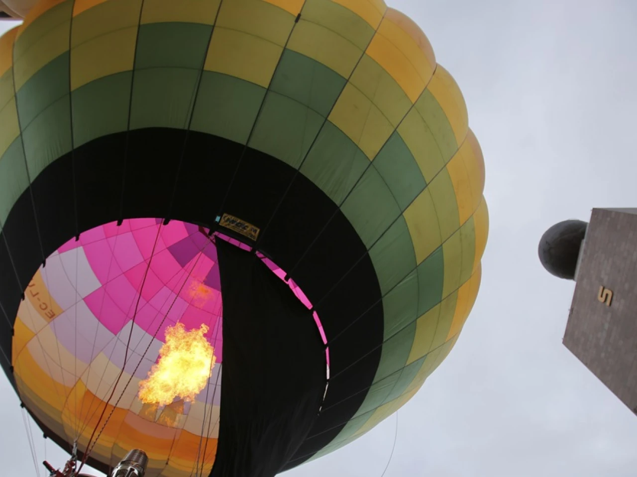 El cielo de la Ciudad Mitad del Mundo, donde está el monumento de Ecuador a la línea ecuatorial que divide los dos hemisferios del planeta, volvió a adornarse este viernes por segundo año consecutivo con los globos aerostáticos que participan en el Festival Internacional del Globo.
