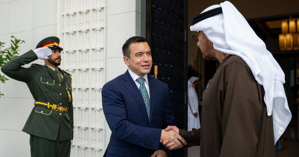 Durante una reunión de alto nivel con el presidente emiratí, el jeque Mohamed bin Zayed Al Nahyan, Noboa firmó el Tratado Internacional de Promoción y Protección de Inversiones.