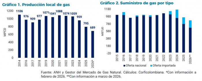 La producción de gas natural en Colombia alcanzó en febrero de 2026 su nivel más bajo para ese mes desde 2009, profundizando el déficit energético y obligando al país a depender cada vez más de importaciones.
