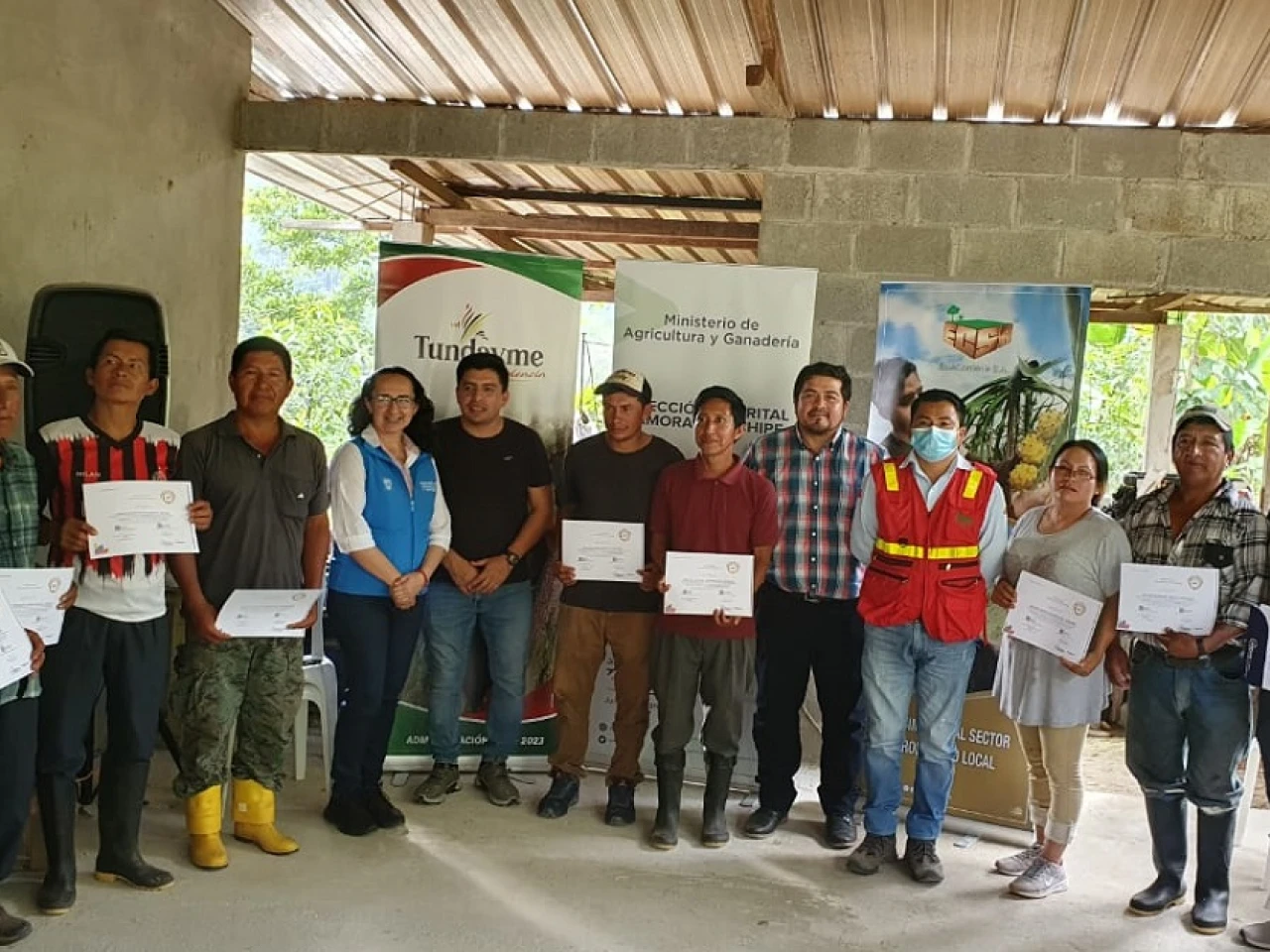 13 productores de la agricultura familiar campesina, dedicados al cultivo de maíz en la parroquia Tundayme, cantón el Pangui, provincia de Zamora Chinchipe, se graduaron en la Comunidad de Aprendizaje.