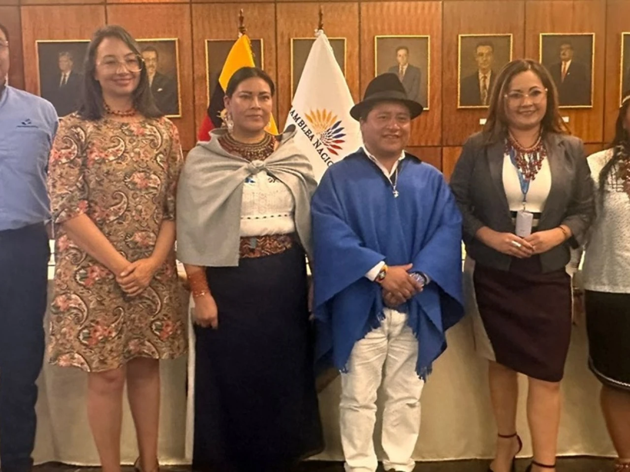 Marcela Reinoso, titular de Petroecuador, recibió el reconocimiento en nombre de la empresa, entregado por Rosa Margarita Arotingo Cushcagua, asambleísta nacional.