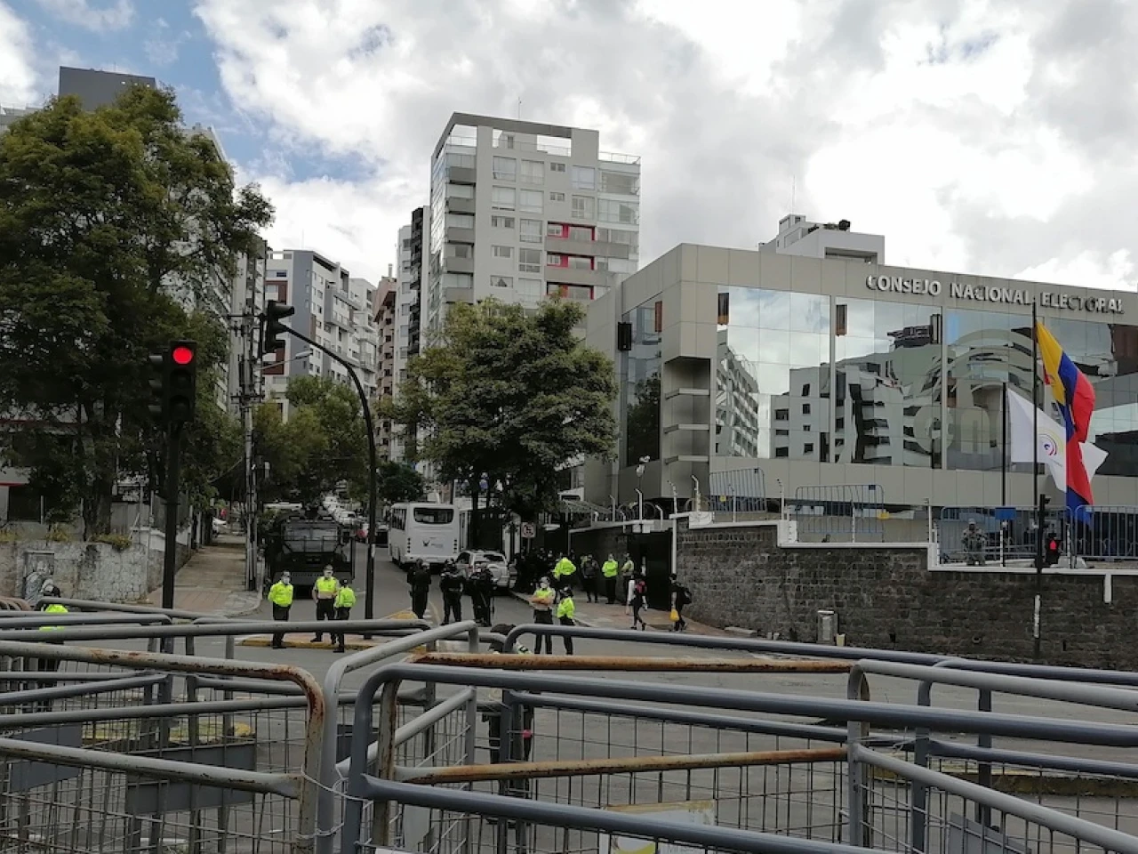 Situada en una de las principales avenidas de Quito, la sede del CNE se encuentra acordonada y en los últimos días el blindaje se ha intensificado con vallas entrecruzadas y concertinas que impiden el paso a la zona.