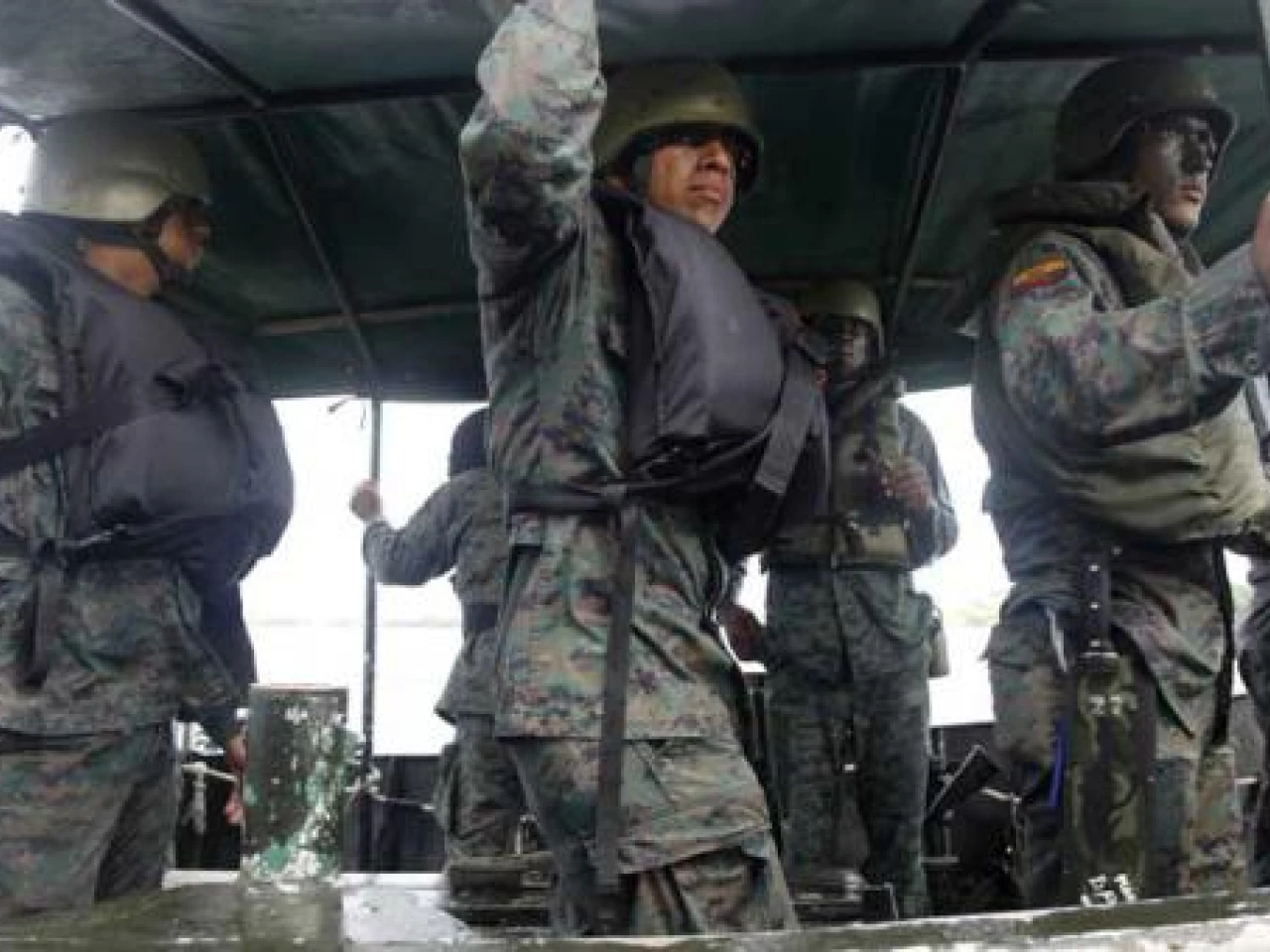 Militares de la Marina ecuatoriana en un patrullaje fluvial en el brazo de mar de San Lorenzo, Esmeraldas, en abril. Foto: El Comercio