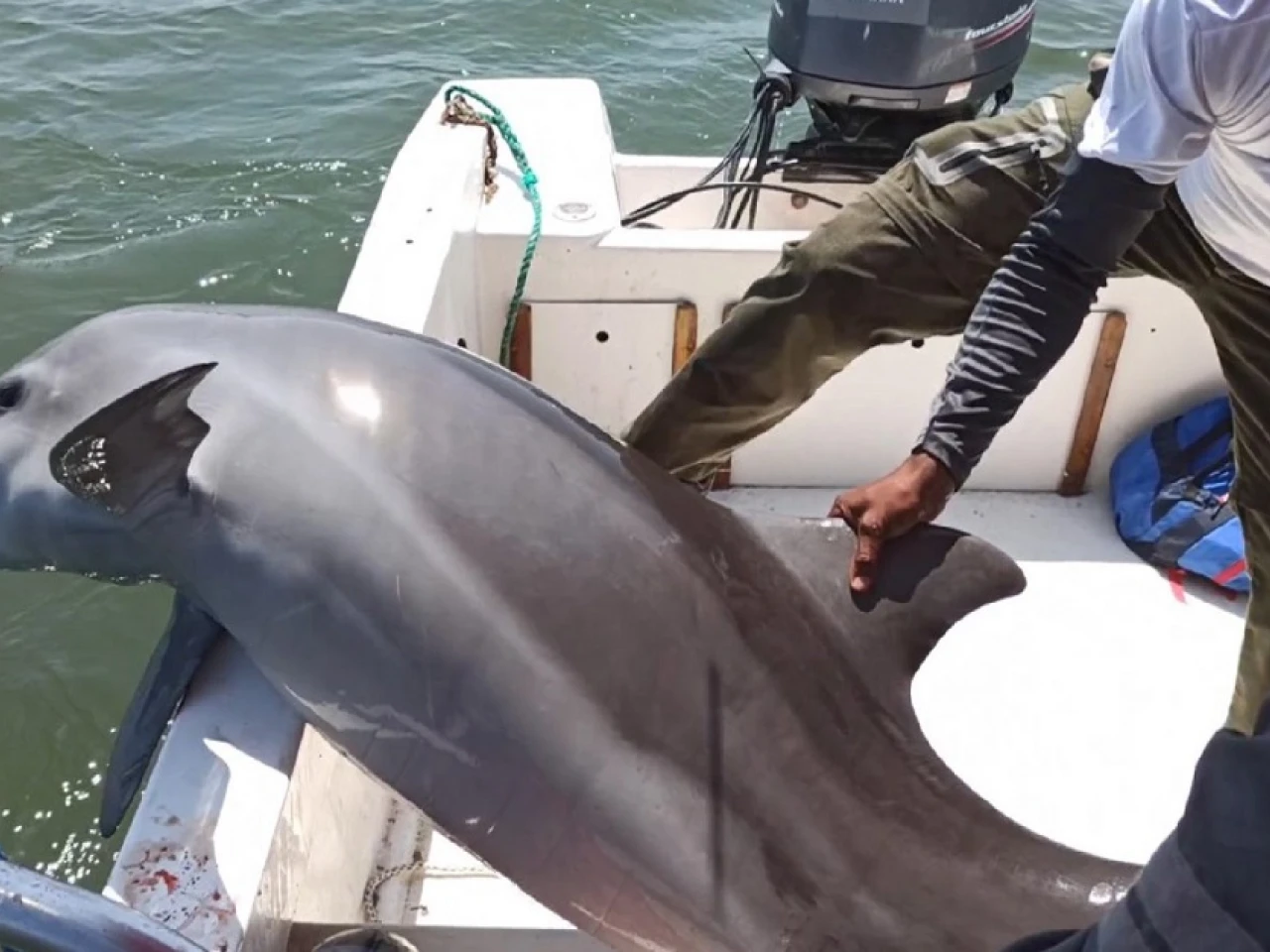 Rescatan a un delfín malherido y atrapado en redes de pesca en el Golfo de Guayaquil/ Foto: Cortesía del Ministerio de Ambiente