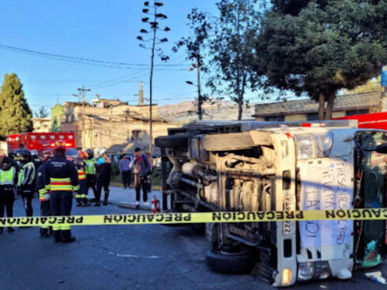 Un camión con pancarta de las protestas se volcó en la av. Maldonado, sur de Quito