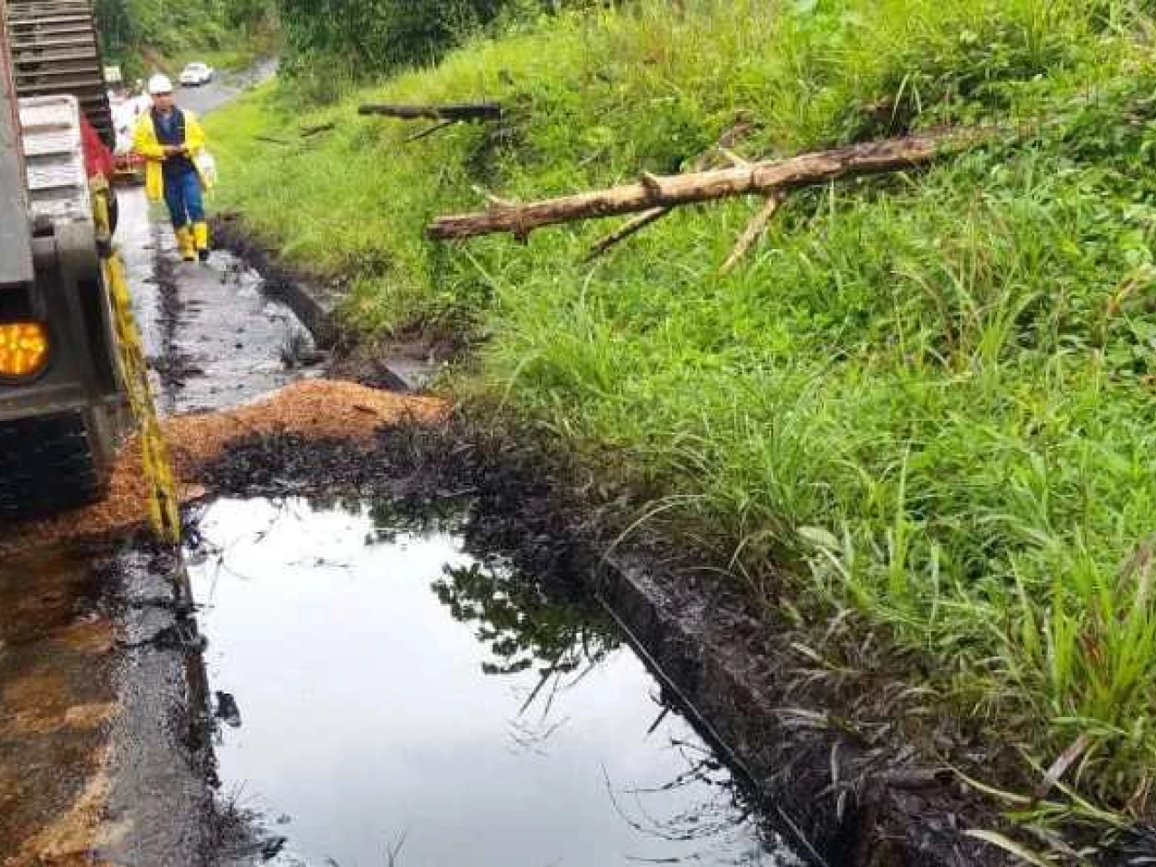 La presunta perforación intencional del tubo de petróleo en el tramo Dureno Nueva Loja ocasionó un derrame de petróleo a la altura del kilómetro 23.