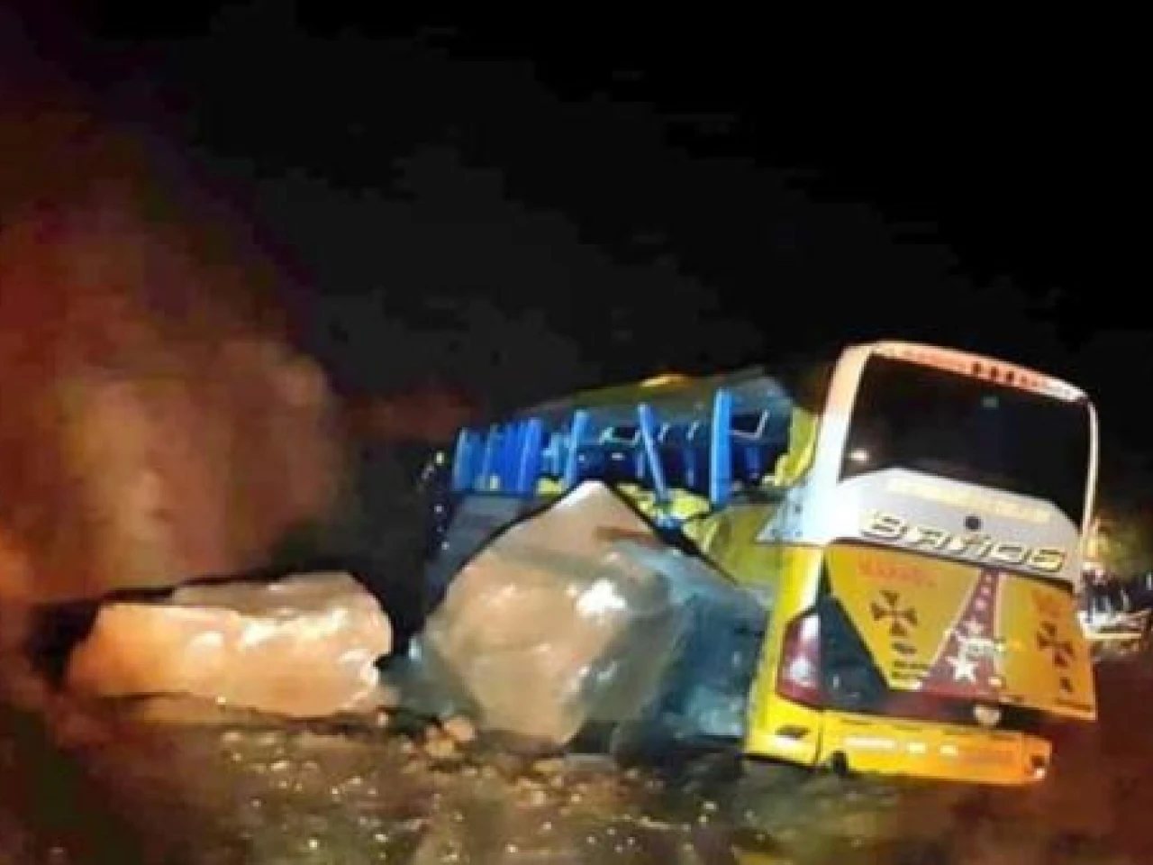Rocas gigantes cayeron sobre un bus interprovincial en la vía Baeza - Tena; hay un fallecido y 13 heridos