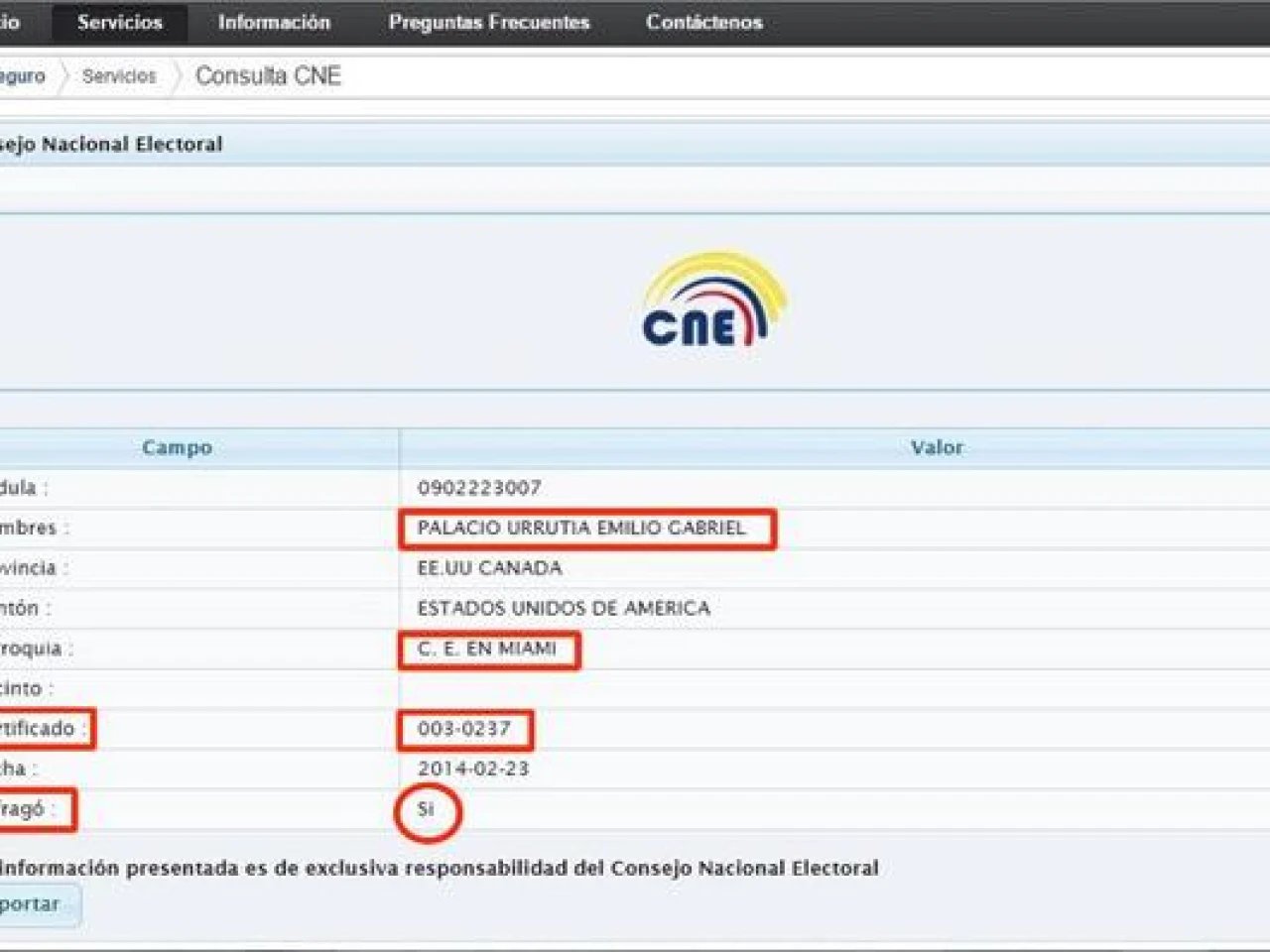 Me contó que yo aparecía en los padrones electorales como uno de los ciudadanos que votó en las elecciones de febrero del 2014, a pesar de que la ley nos prohíbe a los empadronados en el extranjero que votemos cuando se trata de elecciones seccionales.