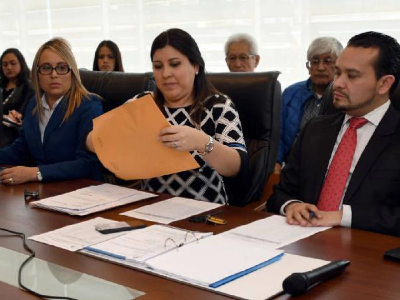 QUITO. Zonnia Martínez (d), ejecutiva de Comercio Internacional de EP Petroecuador, se encargó de leer las ofertas de las empresas interesadas en la compra de crudo. Foto: El Universo