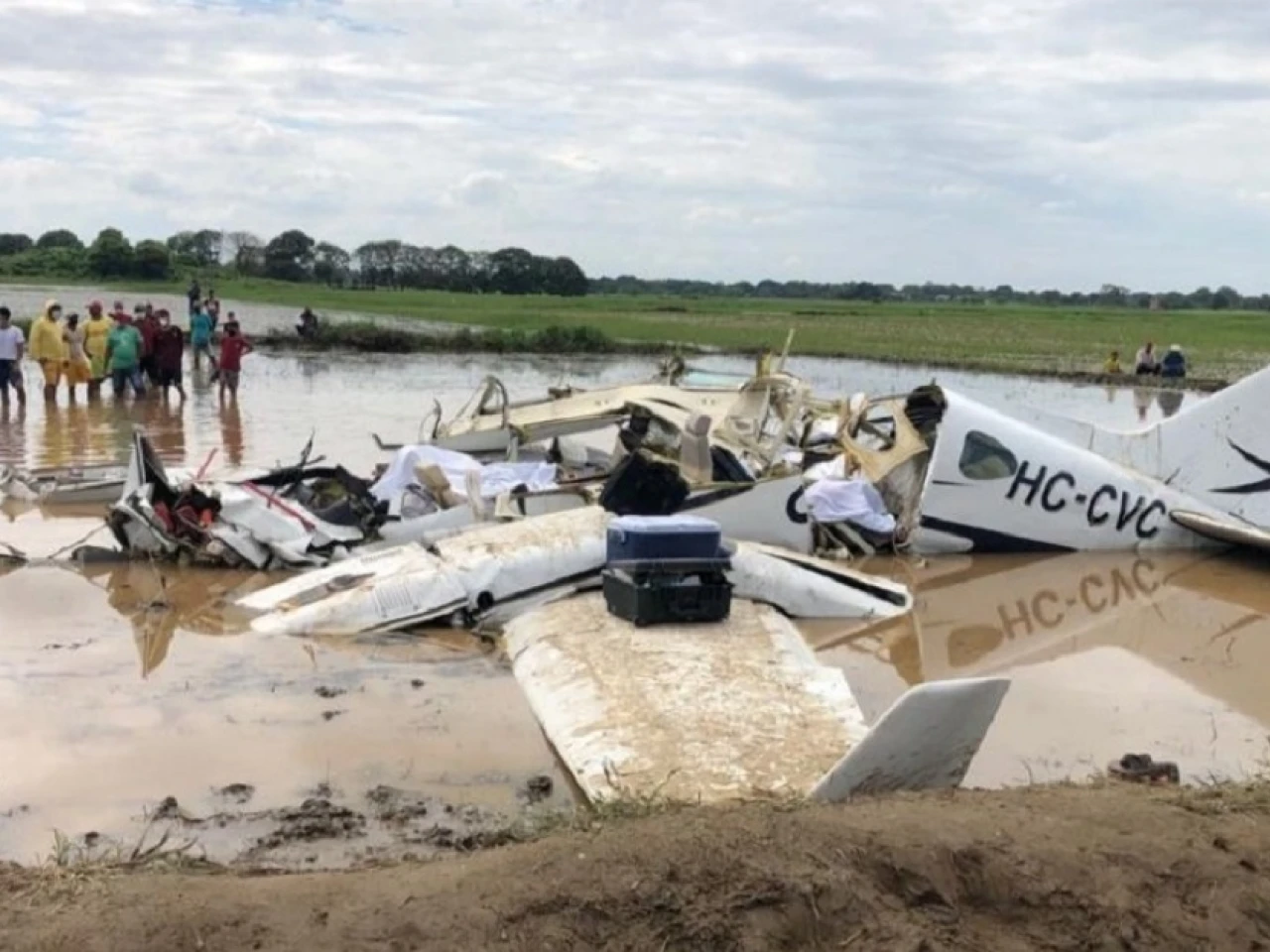 La Dirección de Aviación Civil adjuntó una fotografía en la que se aprecian los restos de la avioneta boca abajo sobre una superficie de agua y personal de la Policía y Bomberos durante las labores de reconocimiento, así como decenas de personas sobre la cabina y alas del aparato. EFE