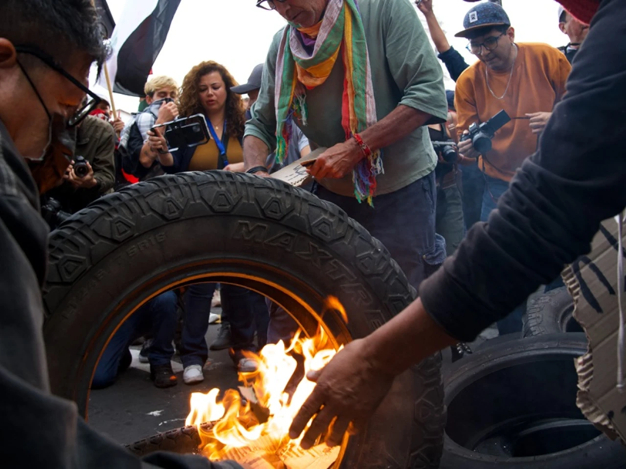 Con el grito de 'Fuera Noboa, fuera', los manifestantes también recordaron los 102 años de la llamada 'masacre de Guayaquil', una matanza de trabajadores por parte de la fuerza pública ocurrida el 15 de noviembre de 1922, considerada como fecha insigne del sindicalismo ecuatoriano.
