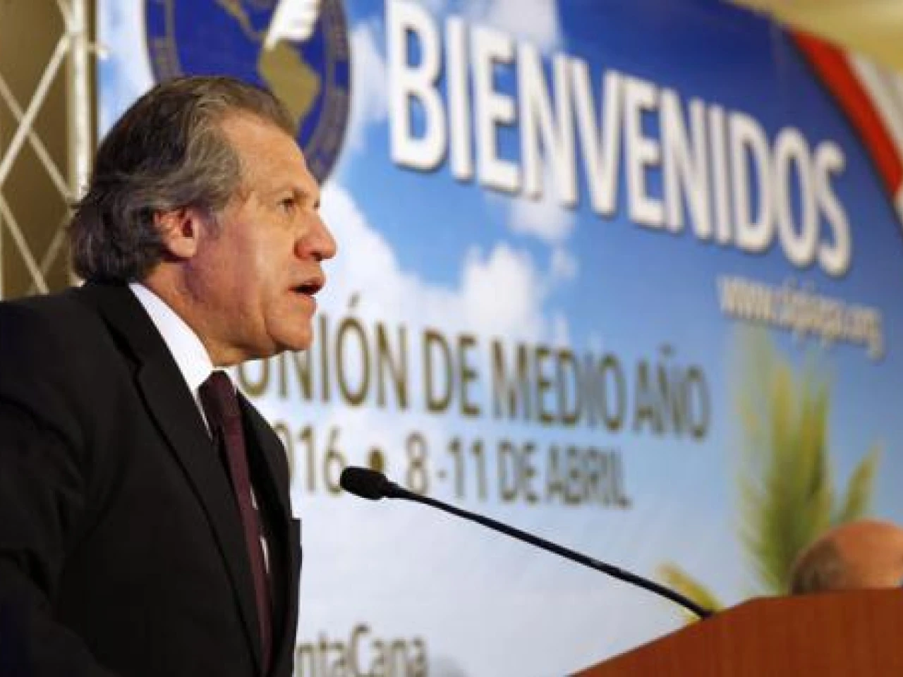 El secretario general de la Organización de Estados Americanos (OEA), Luis Almagro, inauguró la reunión oficial de la asamblea de medio año de la Sociedad Interamericana de Prensa (SIP). Foto: EFE