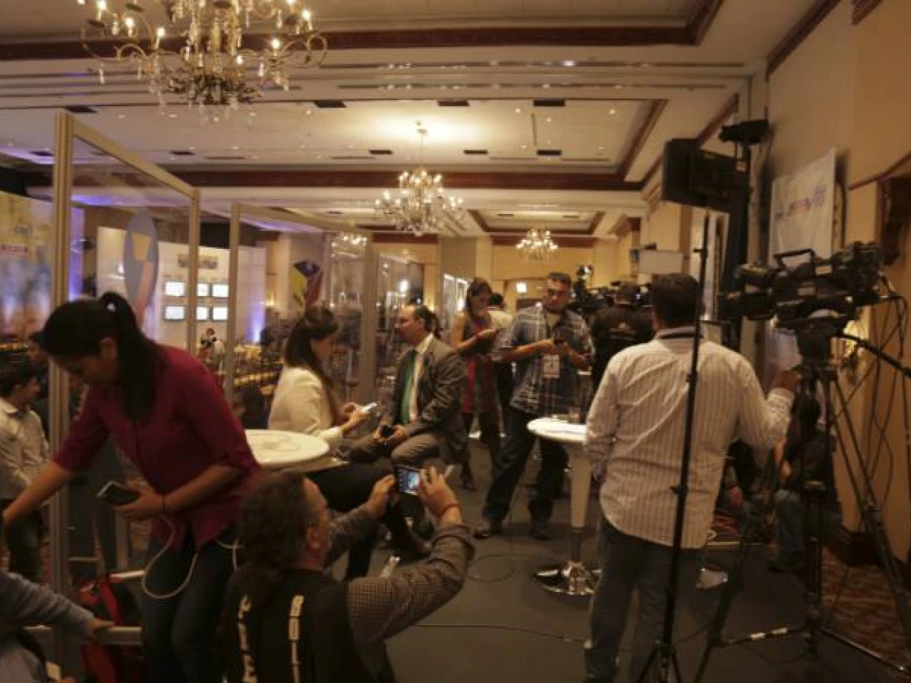 Periodistas cubriendo último proceso electoral, en área adecuada para prensa en el sitio donde se dieron resultados. Foto: El Universo