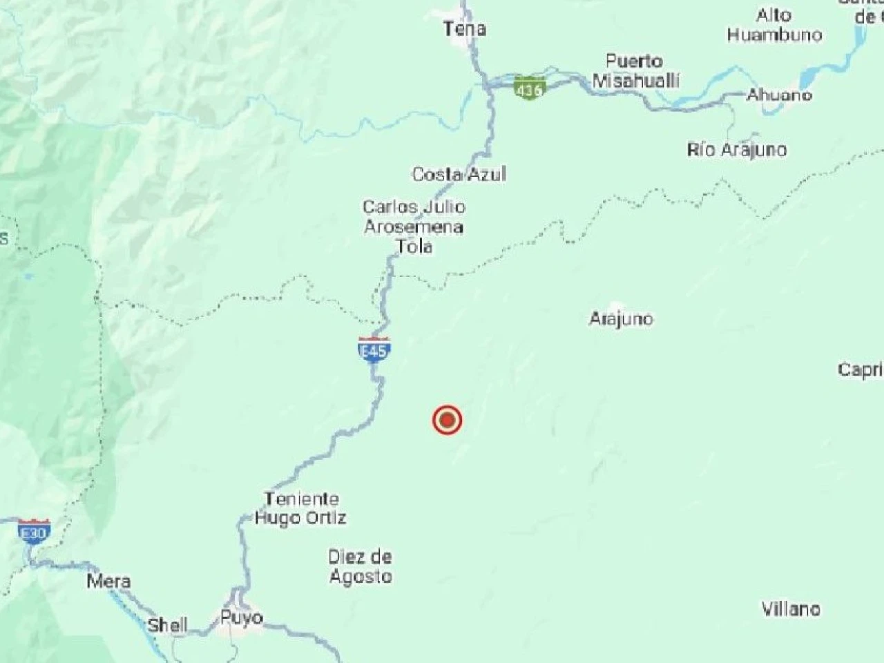 Según el Instituto Geofísico, el temblor se registró a 26,74 kilómetros de la ciudad de Puyo, capital de la provincia, y ocurrió a las 18.11 hora local (23.11 GMT) a 1,32 grados de latitud sur y a 77,8 grados de longitud oeste.