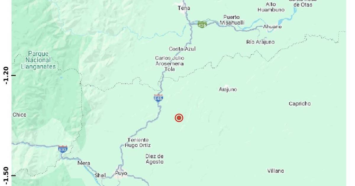 El temblor se registró a 26,74 kilómetros de Puyo