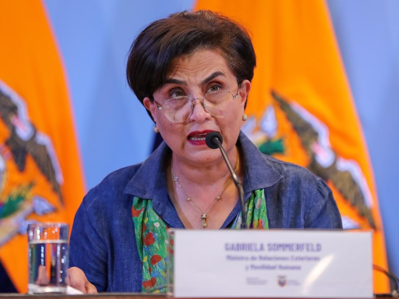 La canciller ecuatoriana indicó que desde su Ministerio se han enviado cartas a la vicepresidenta para recordarle que no puede expresarse sobre asuntos de Ecuador desde Israel porque "hay una práctica histórica en la que los embajadores no se pueden pronunciar sobre los temas de Ecuador".