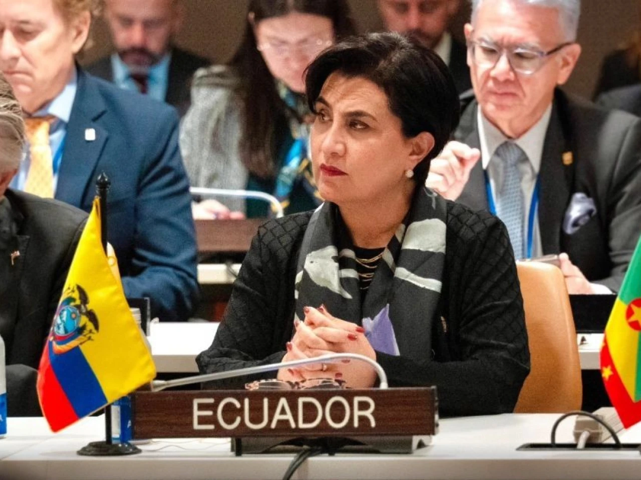 La titular de la diplomacia ecuatoriana está desde el lunes en Nueva York, donde ha participado en reuniones de ministros de la Comunidad de Estados Latinoamericanos y Caribeños (Celac) y otra sobre migraciones, así como en encuentros con sus homólogos de Grecia y Chipre, Giorgos Gerapetritis y Constantinos Kombos, respectivamente.