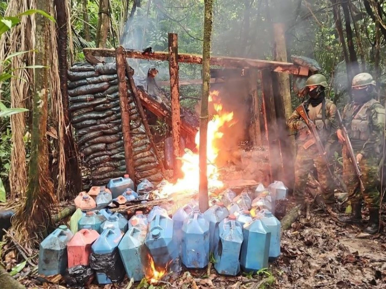 Tras asegurar el área, el personal militar coordinó con el fiscal de turno y otras entidades competentes, quienes autorizaron la destrucción de los insumos químicos debido a las dificultades de acceso en la zona.