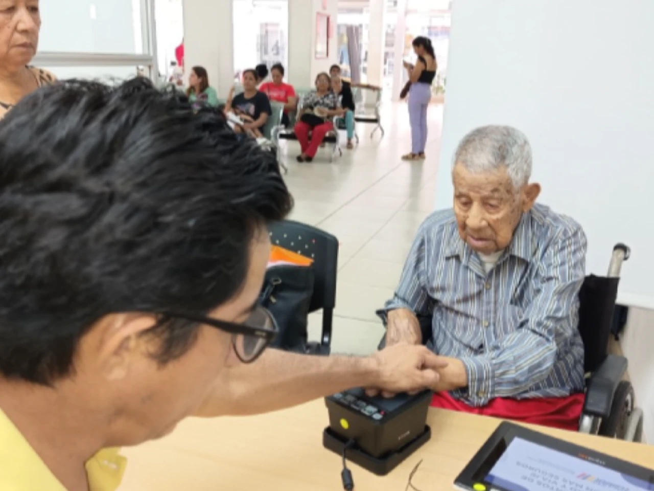 Con paso lento pero firme, Juan fue recibido por el personal de la institución, quienes aplicaron los protocolos de atención inclusiva para garantizarle un servicio prioritario.