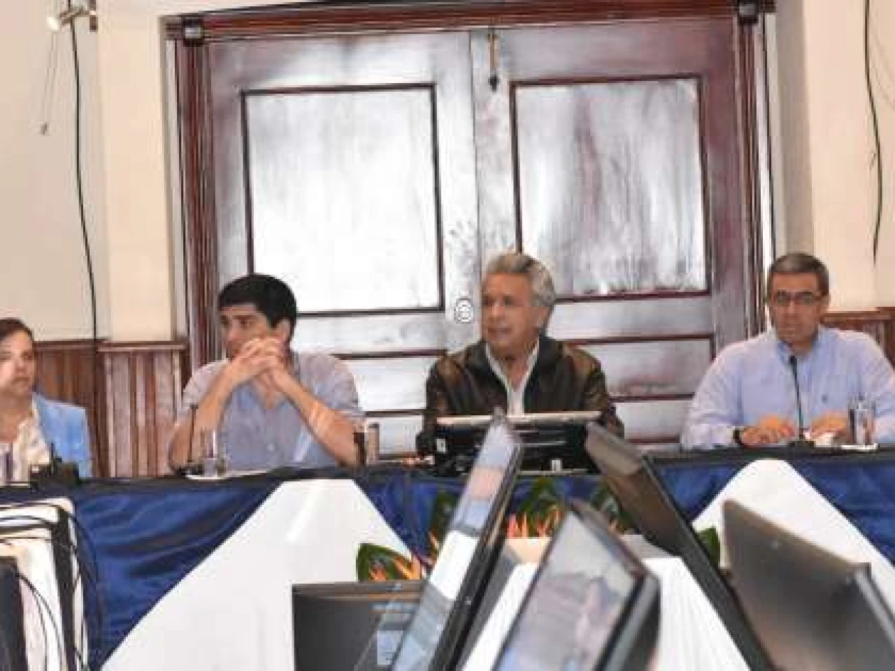 Diálogo. El Presidente se reunió por la tarde con su Gabinete en un salón de la Universidad Católica. Foto: La Hora Diálogo. El Presidente se reunió por la tarde con su Gabinete en un salón de la Universidad Católica. Foto: La Hora