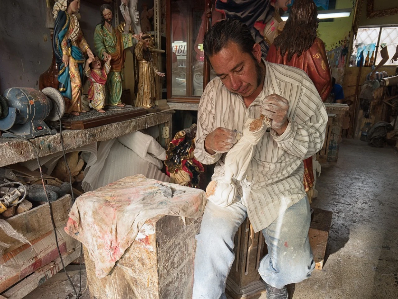 El arte de crear formas tridimensionales a través del tallado, es el resultado de la experticia de artesanos, herederos de saberes propios de la Escuela Quiteña, como son la elaboración de esculturas religiosas producto de la dinámica y sincretismo cultural, expresados en cada creación.