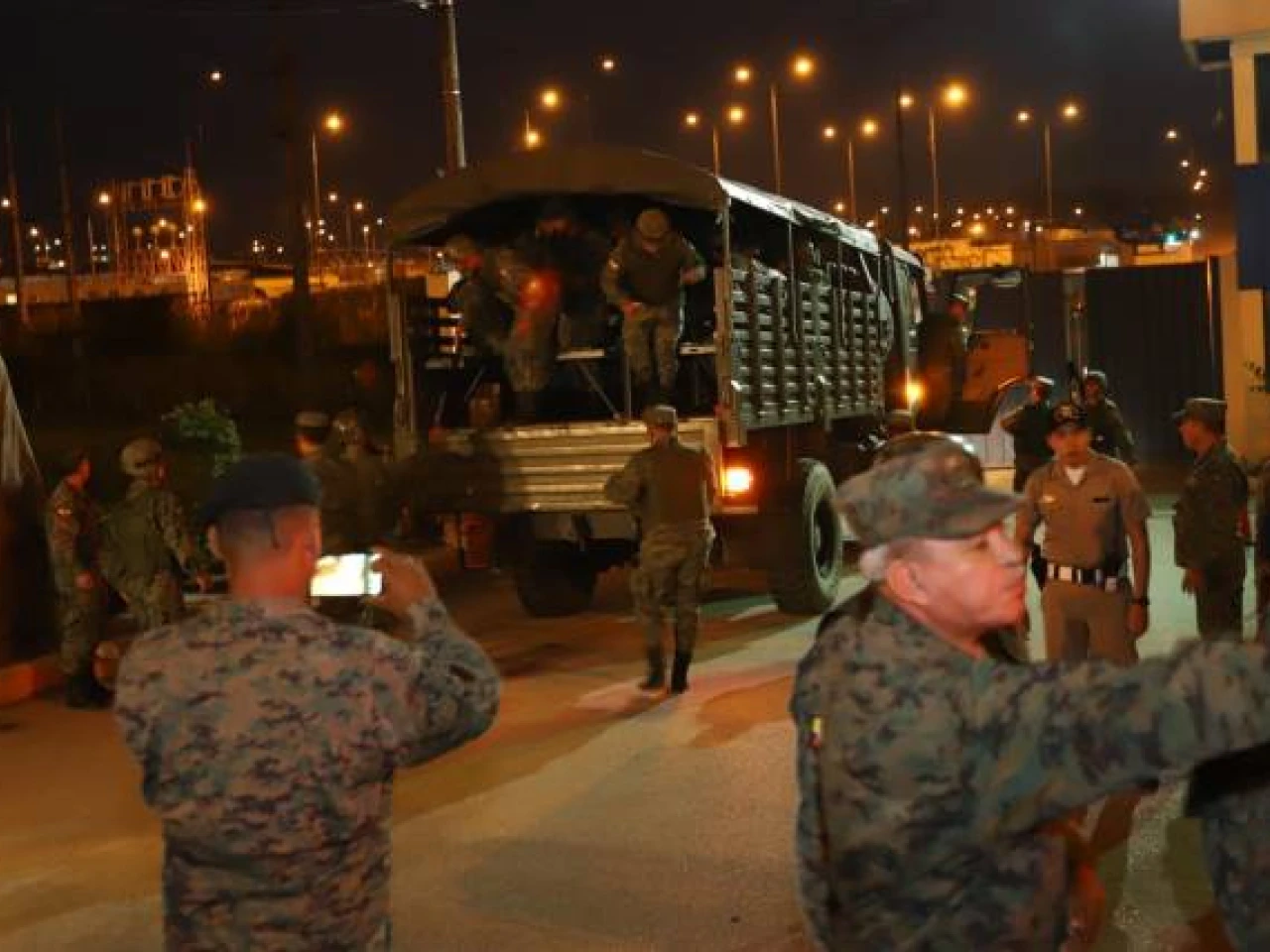 Control. Militares resguardan el ingreso al Centro de Privación de Libertad, en prevención de nuevos desmanes. Foto: Expreso