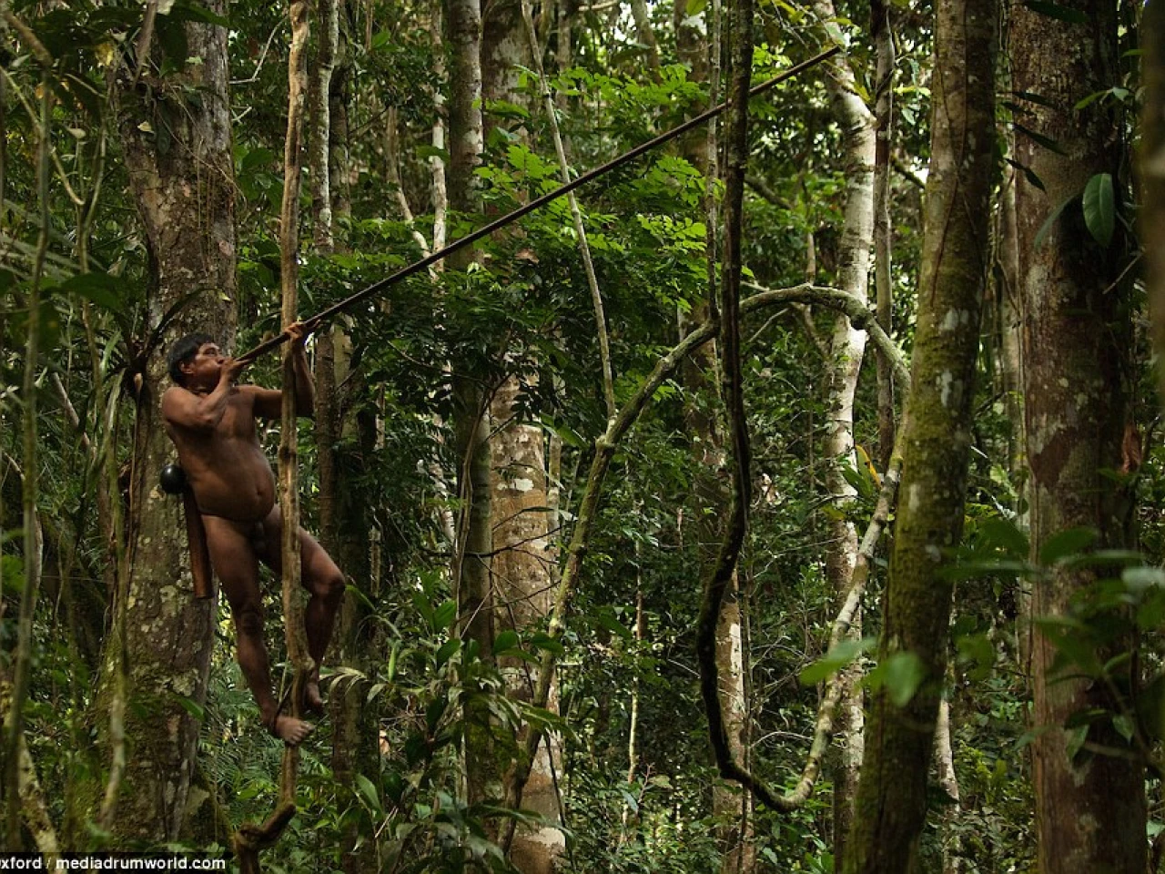 British photographer Pete Oxford, who took these images, said: 'The Huaorani Indians are a forest people highly in tune with their environment.