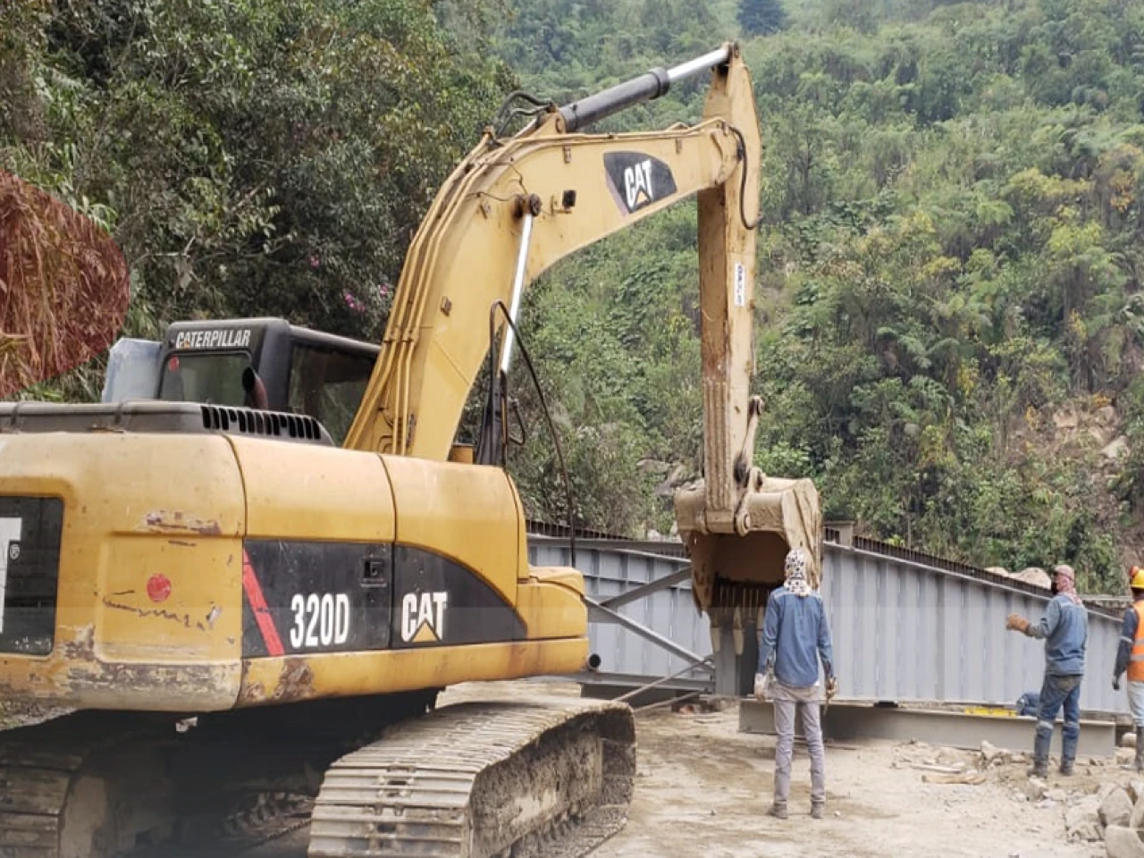 Tres de las cinco vigas del nuevo puente El Destrozo fueron lanzadas