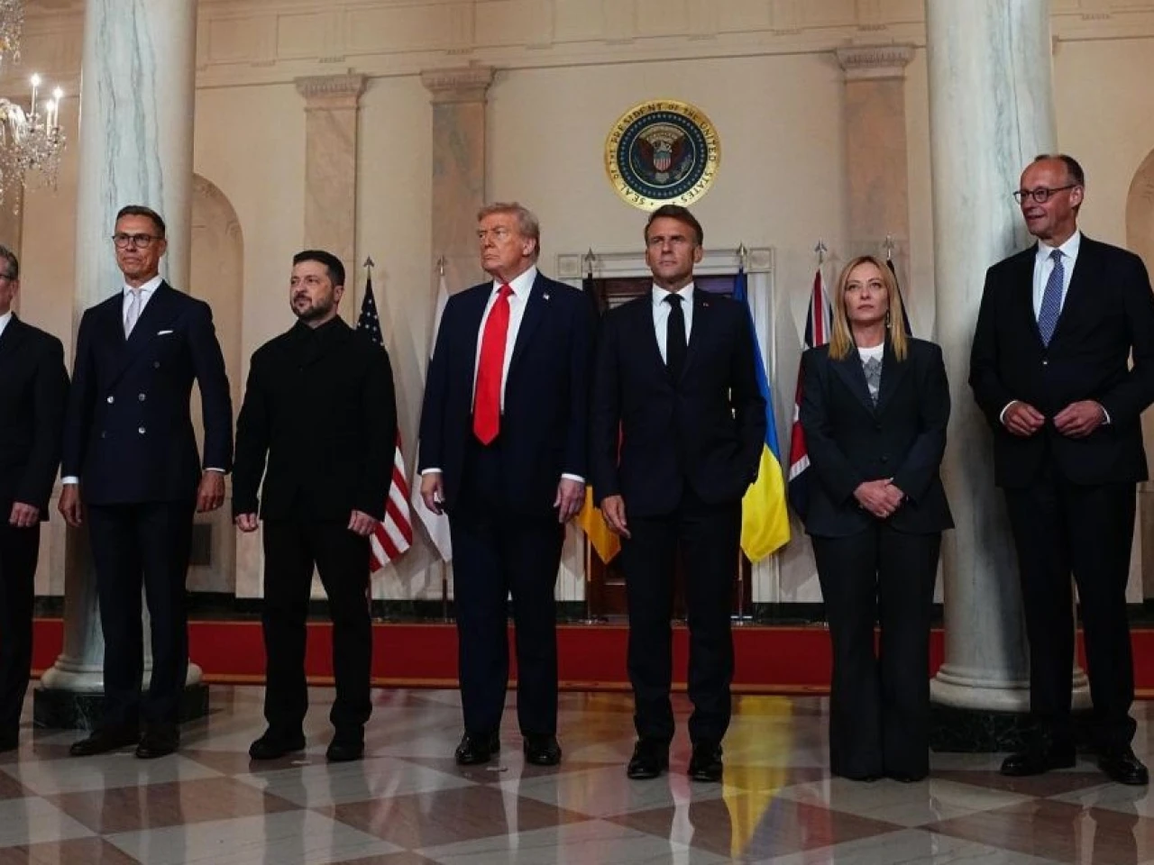 Trump mantuvo la reunión multilateral con los líderes de la Unión Europea, Ursula Von der Leyen; el secretario general de la OTAN, Mark Rutte; de Alemania, Friedrich Merz; Finlandia, Alexander Stubb; la primera ministra italiana, Giorgia Meloni, y el británico, Keir Starmer.