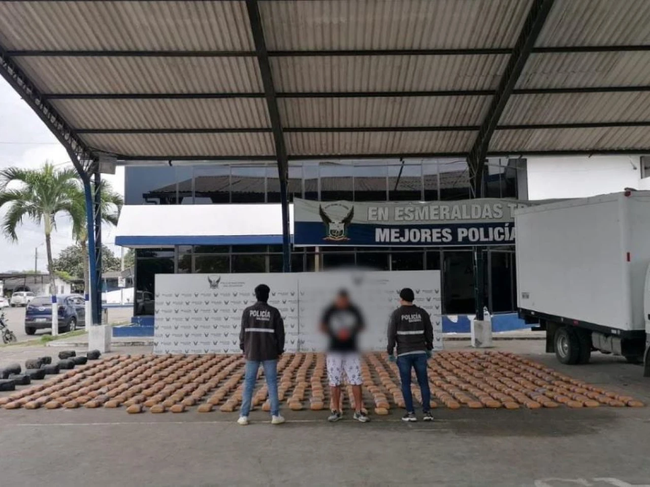 El camión fue interceptado por policías cuando trató de evadir un control policial en la provincia de Esmeraldas, ubicada en la costa norte del país, limítrofe con Colombia, lo que acabó también con el conductor del vehículo detenido.