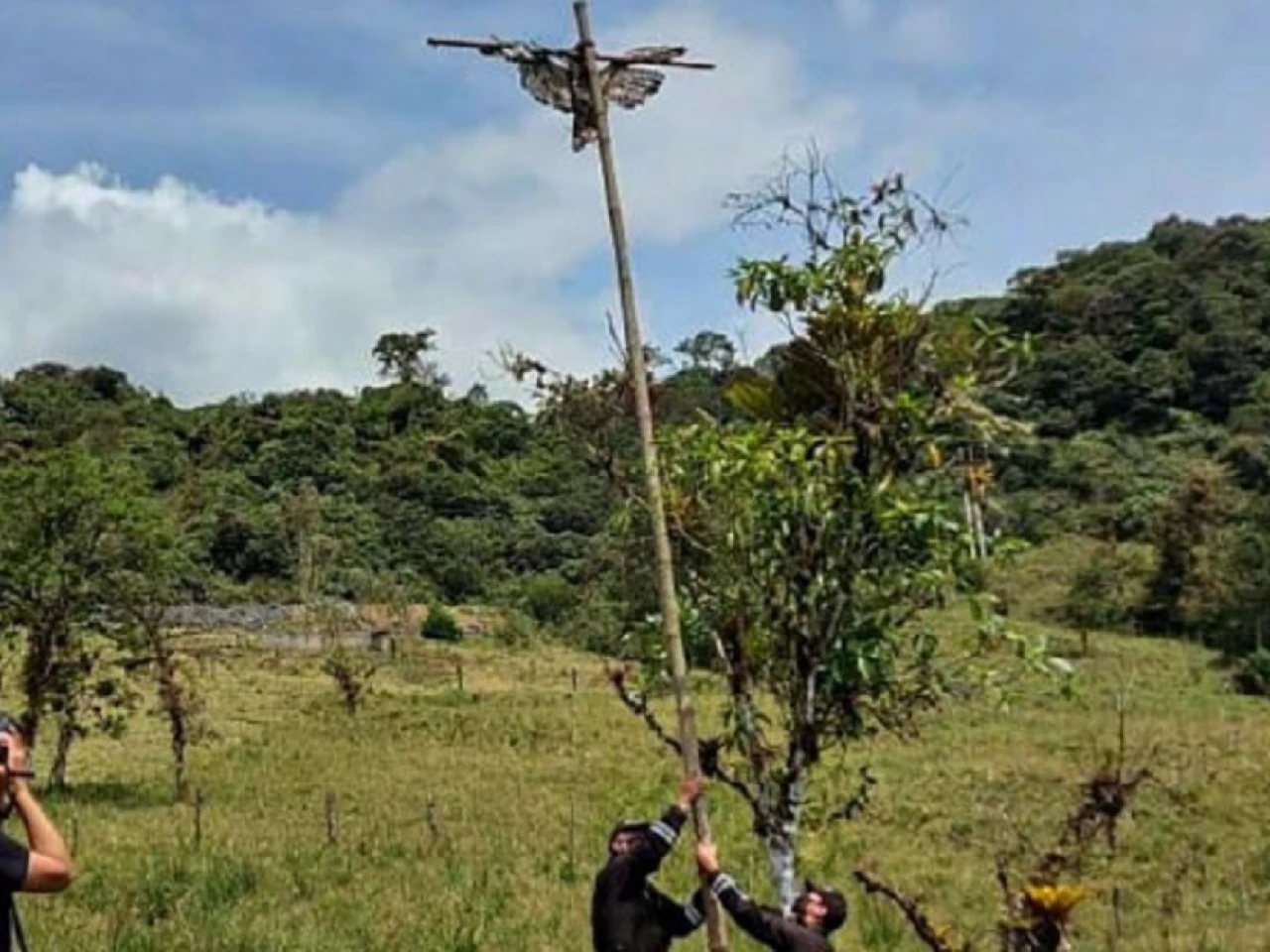 Luis S. es biomonitor y se encarga de verificar la existencia y ubicación de nidos de cóndores y otras aves. En su testimonio, rendido en la audiencia de juzgamiento, dijo que el 17 de febrero de 2021 vio desde la carretera al ave amarrada a una caña guadua, de más de 5 metros de alto, crucificada y lista para ser embalsamada.