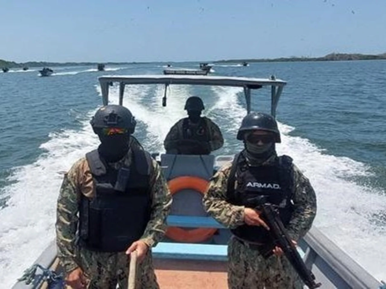 La embarcación fue interceptada por una patrulla de los guardacostas ecuatorianos, según se aprecia en una imagen difundida por las Fuerzas Armadas.