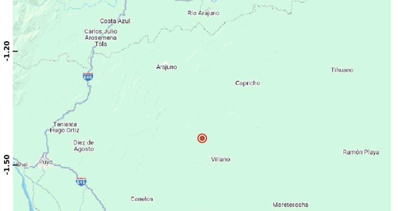 El temblor ocurrió a una profundidad de 199 kilómetros y a 46,78 kilómetros de la ciudad de Puyo