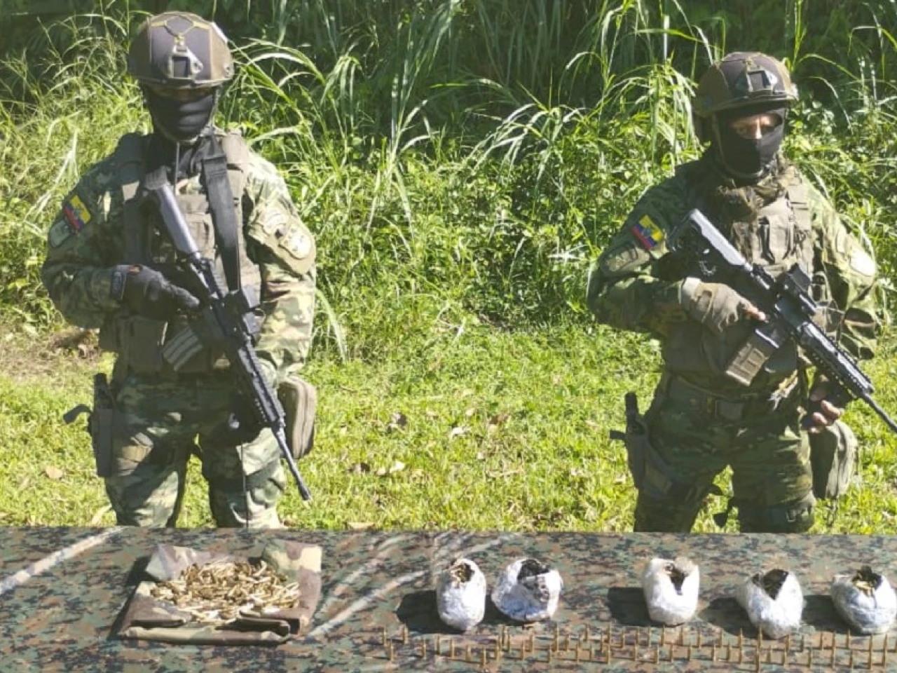 Durante la operación militar varios paquetes enterrados con balas de alto calibre fueron encontrados, lo que indicaría la presencia de grupos guerrilleros en territorio ecuatoriano. Las autoridades tomaron fotografías del lugar para realizar investigaciones posteriores.