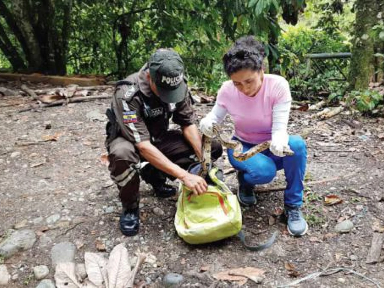 La Unidad de Protección del Medio Ambiente (UPMA) de la Policía Nacional y técnicos de la Unidad de Vida Silvestre de la Dirección Provincial del Ambiente de Napo realizaron un operativo para rescatar a la boa de esta práctica.