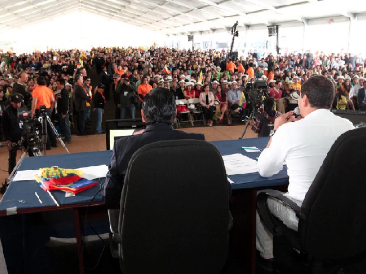 Una sabatina hecha en Nueva York también exigía que haya algarabía y mucho color para transmitir al Ecuador una imagen de alegría y respaldo popular. No bastaba, pues, contratar a 100 “voluntarios” sino que a ellos había que proporcionarles banderas, camisetas y posters para que exhiban a las cámaras. Para eso hubo que desembolsar 10 994 dólares. Claro, que los voluntarios lleven camisetas polo de Alianza País era un detalle indispensable para crear el clima adecuado.