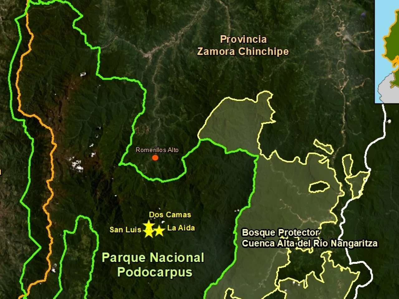En 22 sitios se detectó actividad, lo que, según el reporte del MAAP, "dan evidencia de que dicha actividad continúa en aumento en la actualidad" dentro del Podocarpus, ubicado en la Amazonía ecuatoriana, entre las sureñas provincias de Zamora Chinchipe y Loja.