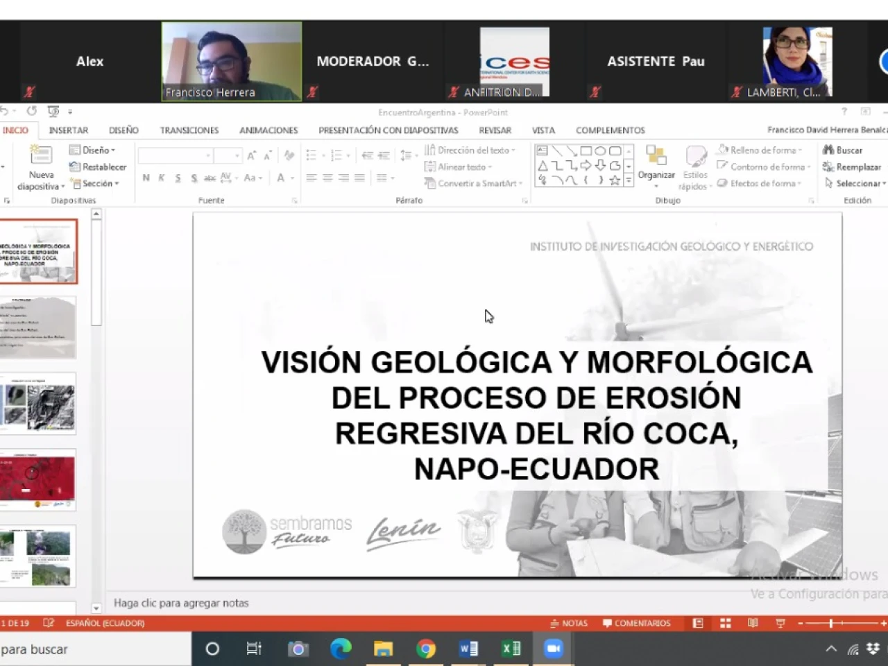 Con la exposición de una visión geológica y morfológica del proceso de erosión regresiva del río Coca, Ecuador marcó su presencia en el 15° Encuentro Internacional de Ciencias de la Tierra (E-ICES-15), que este año se realiza, del 23 al 25 de noviembre, vía web desde Argentina.