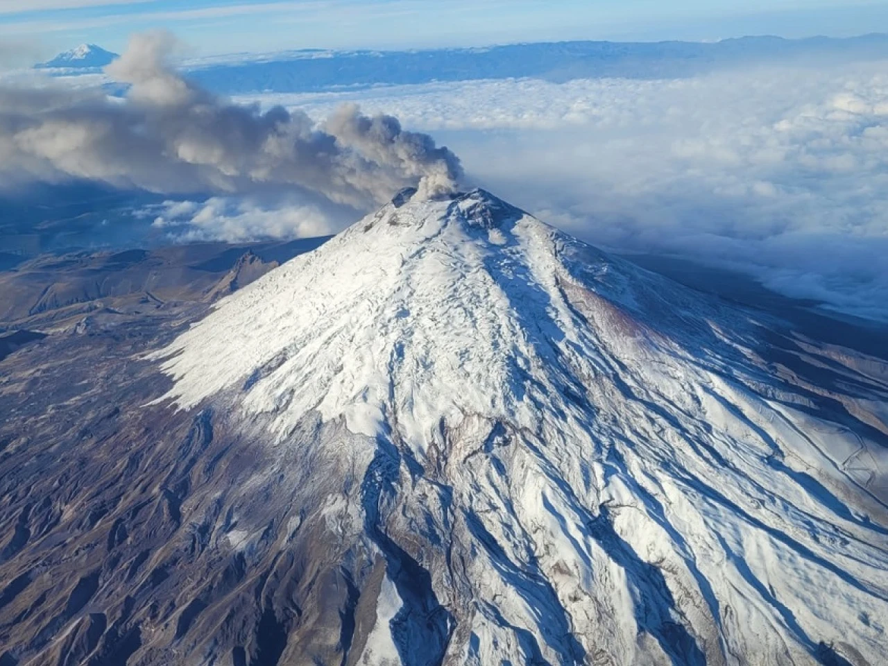 Volcán Cotopaxi emana columna de 500 metros de gases y poca ceniza