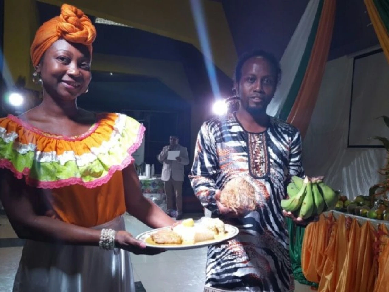 Oferta. El pueblo negro llevó plátano y una muestra de la comida que se puede hacer con este producto. Foto: Expreso